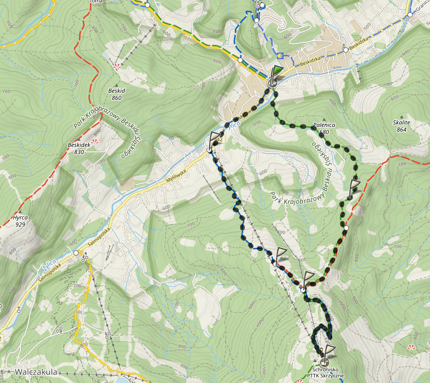 Z centrum Szczyrku mamy dwa szlaki: