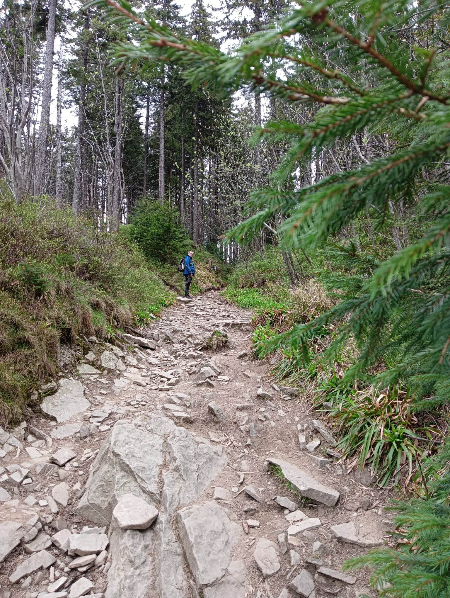 Trasę zaplanowaliśmy tak, że wchodzimy na szczyt szlakiem zielonym, a schodzimy niebieskim.