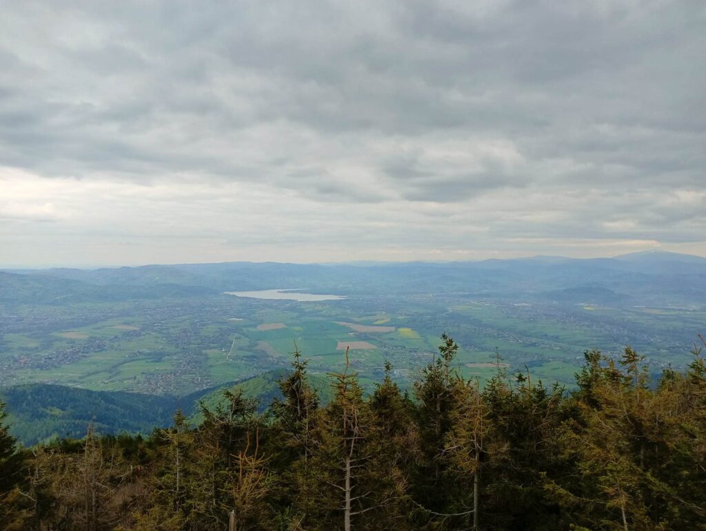 Przy odrobinie szczęścia i dobrej widoczności ze szczytu Skrzycznego dostrzec można Babią Górę oraz Tatry.
